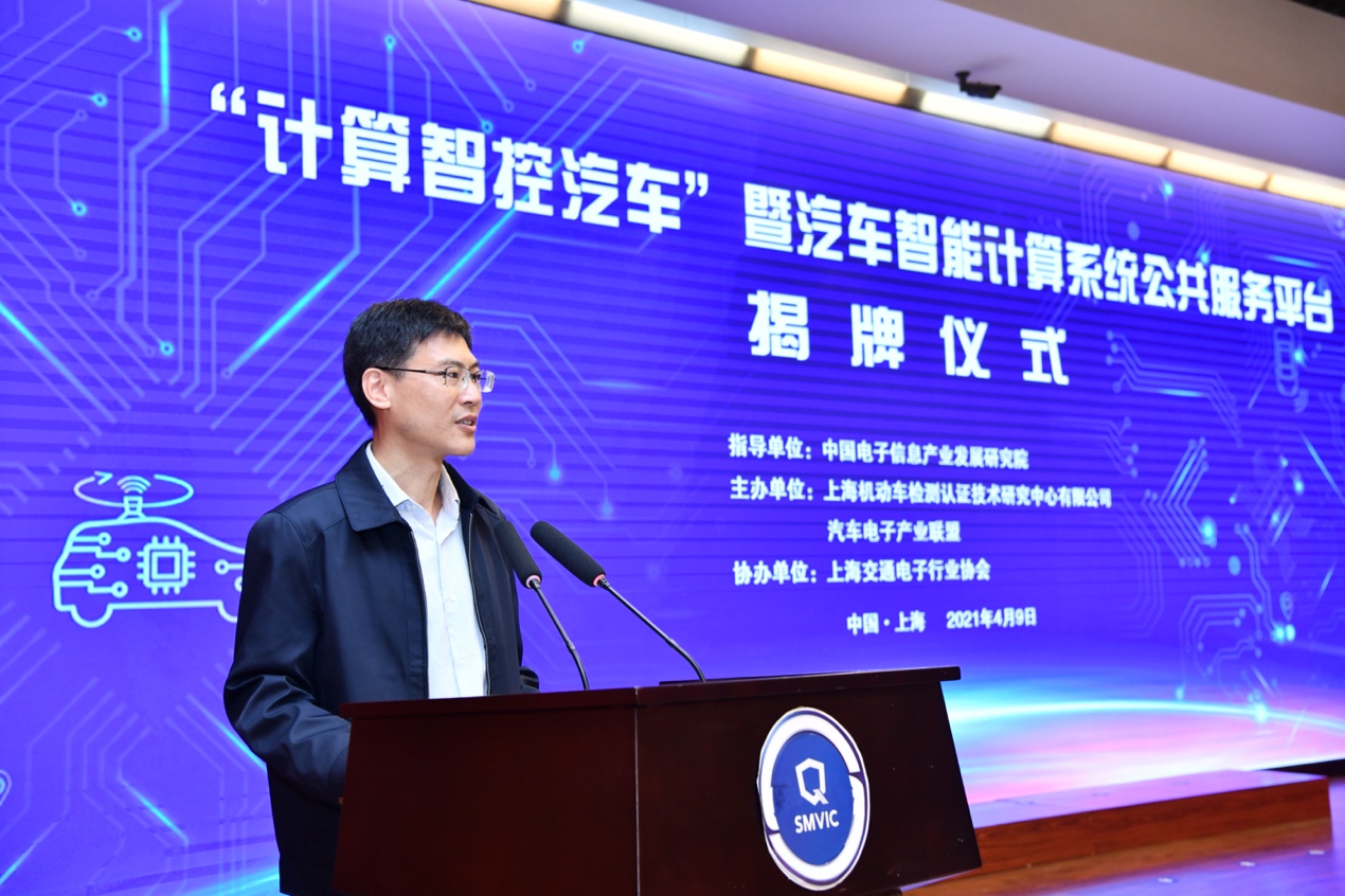 2021年4月9日,在中国电子信息产业发展研究院指导下,由汽车电子产业联盟和上海机动车检测认证技术研究中心有限公司共同主办,上海交通电子行业协会协办的汽车智能计算系统公共服务平台(以下简称“汽车计算系统平台”)成立大会(以下简称成立大会)在上海机动车检测认证技术研究中心有限公司(以下简称“上海汽检”)隆重举行。上海市嘉定区委常委陆祖芳,工业和信息化部电子信息司电子系统处处长吴国纲、同济大学电子信息学院院长陈虹等主管部门领导和专家,以及众多国家机构、地方机构、企业、高校院所代表出席会议。