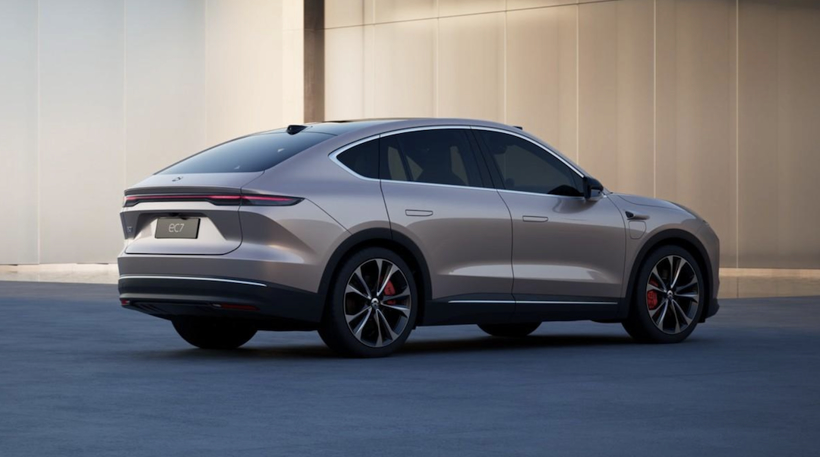 蔚来EC7基于蔚来第二代技术平台NT2打造,另外还是该平台首款CoupeSUV,据蔚来说法,新车拥有全球SUV车型中最低的风阻数据0.230cd,配备有主动升降式尾翼、隐藏式门把手等等。动力方面新车也非常能打,它搭载了双电机四驱系统,官方公布的百公里加速时间为3.8秒,百公⾥刹⻋距离为33.9⽶,并配备75kWh、100kWh两种电池包,CLTC综合续航里程分别为490公里、635公里。