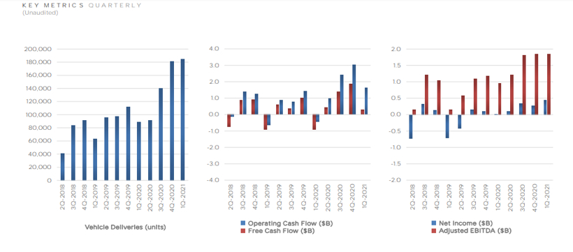 特斯拉首席执行官埃隆·马斯克(Elon Musk)在财报会议上表示,“从很多方面来看,2021年第一季度都是创纪录的。我们看到消费者对电动汽车的看法发生了真正的转变,我们的需求是有史以来最好的。”