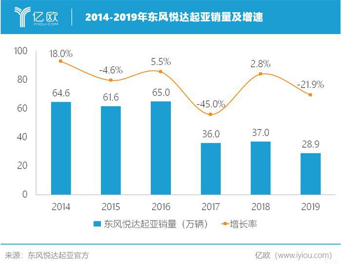 2019年,东风悦达起亚就以28.9万辆的销量成绩,创造了近10年来的新低——比2018年的37万销量下降不少。